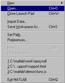 По сравнению с версией 5.3.1 добавлена единственная позиция Web, дающая доступ к Интернет-ресурсам, описанный в уроке 1. Подменю File содержит ряд операций и команд для работы с файлами. Оно показано на рис. 5.13. Число операций и команд значительно сокращено по сравнению с тем же меню у предшествующей версии системы MATLAB. Теперь меню File содержит следующие операции: