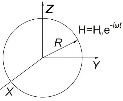 $H=H_{0}{\text{e}}^{i\omega t}\, (R\ll \lambda =\frac{2\pi }{\omega }c)$. Найти амплитуду