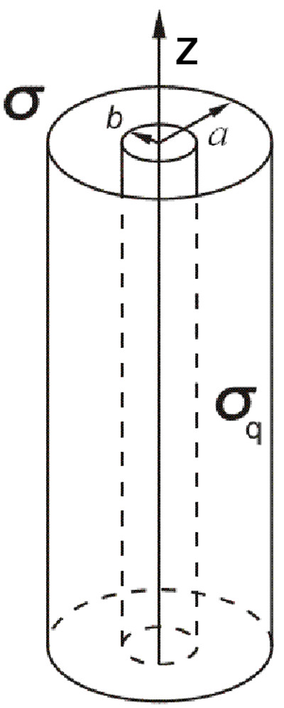 котором равномерно распределен поверхностный заряд с плотностью $\sigma_{q}$. Внутренний цилиндр