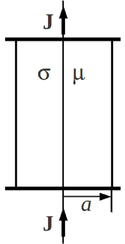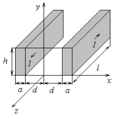 $a \ll h \ll l$ вдоль наибольших сторон пропускается переменный ток в