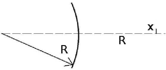 зеркала с радиусом $R$, как показано на рисунке $(R\gg x)$. Найти размер его