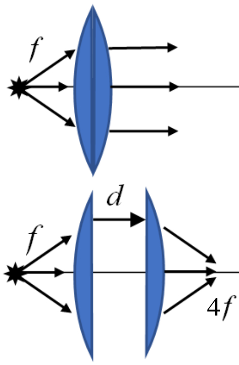 оси, расположенную на расстоянии $4f$ от правой линзы? |