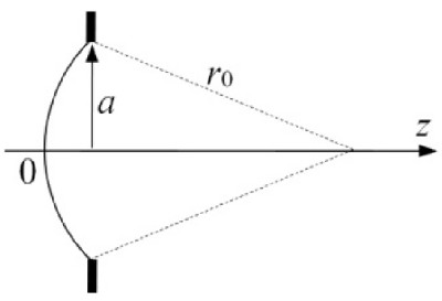 волна, сходящаяся в точку на оси отверстия на расстоянии $r_0$ от его края.