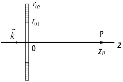 Радиус отверстия $r_{0} =\sqrt {\lambda \,z_{p} } $ (точка наблюдения $P$