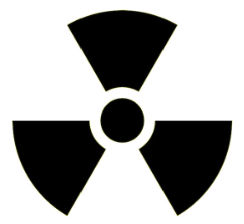 | На стеклянной двери в лабораторию непрозрачной краской нарисован знак, предупреждающий о радиоактивной опасности (см. рисунок). На дверь падает по нормали плоская ЭМ волна интенсивности $I_0$. Определите, какая интенсивность $I^*$ будет в точке, расположенной на оси симметрии за знаком на таком расстоянии, что радиус ''кружка'' совпадает с радиусом 1-й зоны Френеля, а внутренний и внешний радиусы ''лепестков'' равны радиусам 2-й и 9-й зон Френеля соответственно. |