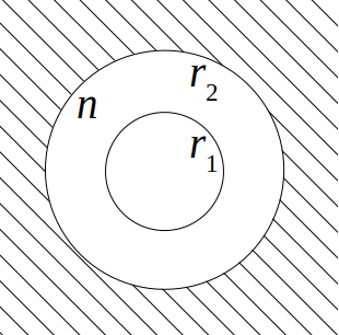 | Плоское прозрачное кольцо с толщиной $\Delta$ и показателем преломления $n$,