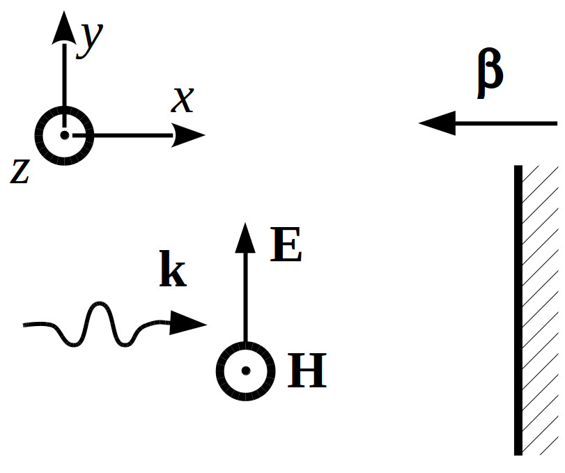 со скоростью $\vec{\beta}=\frac{v}{c} \vec{e}_x$):