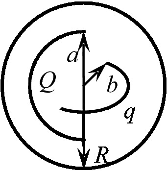 | Система двух тонких концентрических проводящих полуколец с зарядами $Q$ и
