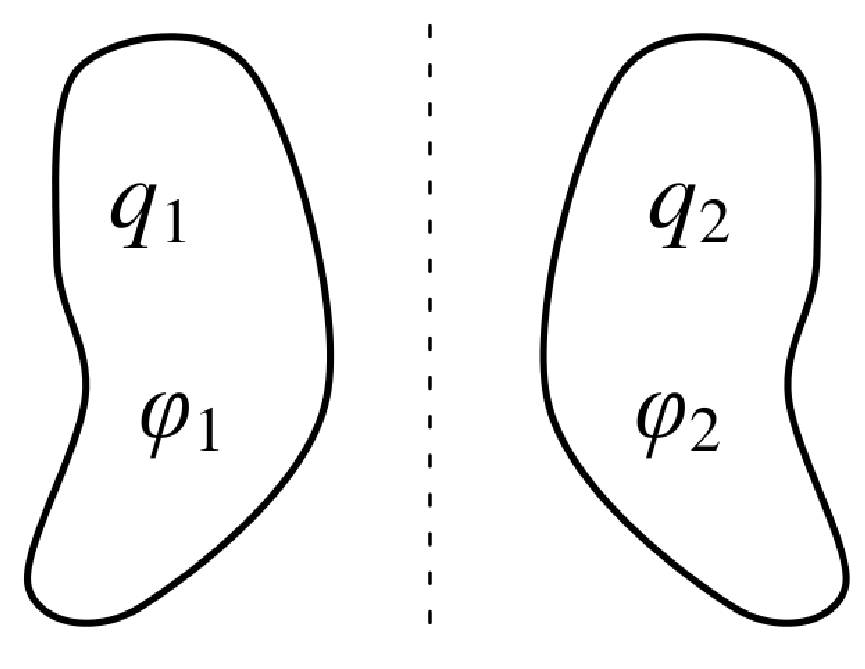 имеют заряды $q_1$, $q_2$ и потенциалы $\varphi_1$, $\varphi_2$ соответственно. Найти