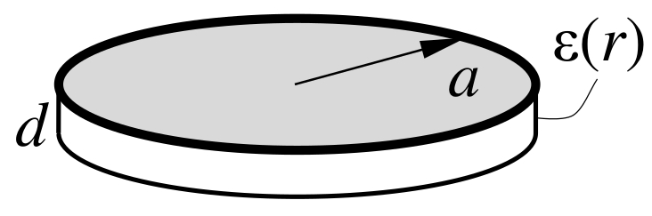 а диэлектрическая проницаемость диэлектрика между ними зависит от расстояния до центра как