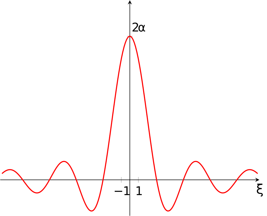 Вычислить преобразования Фурье прямоугольного импульса $$ f(x)= \begin{cases} 1, \text{ если } |x|<\alpha,\\ 0, \text{ если } |x|>\alpha. \end{cases} $$