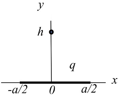 | Бесконечная по координате y полоса $(z=0,\, -b\leqslant x\leqslant b)$ однородно заряжена с поверхностной плотностью заряда $\sigma$.