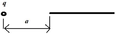 | Найти силу, с которой точечный заряд $q$ действует на полубесконечную проволочку,