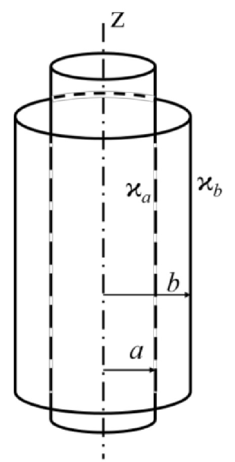 причем $\sigma_1/\varepsilon_1=\sigma_2/\varepsilon_2$. Радиус границы раздела слоев – $b$.