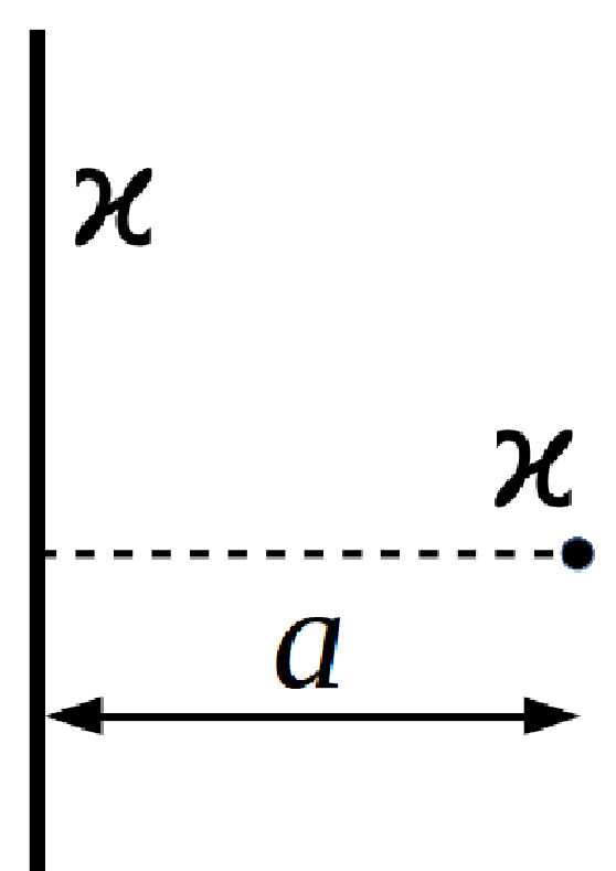 равномерно заряженную с линейной плотностью заряда $\varkappa$. Заряд расположен на расстоянии $a$
