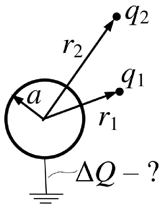 Заземление представляет собой идеально проводящий шар радиуса $a$, помещенный в бесконечную