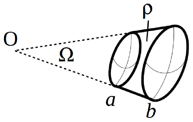 | Найти емкость длинного ($l\gg b,a$) цилиндрического конденсатора (сечение показано на рисунке),
