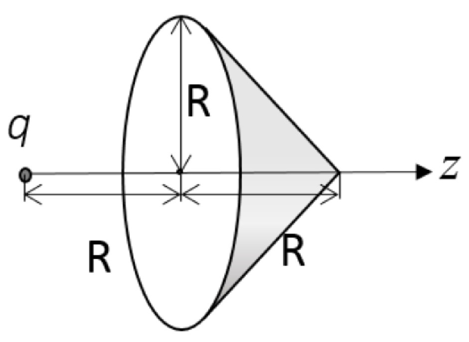 электрического поля $\vec{E}$ через область границы (включая границу), имеющую форму круга с осью,