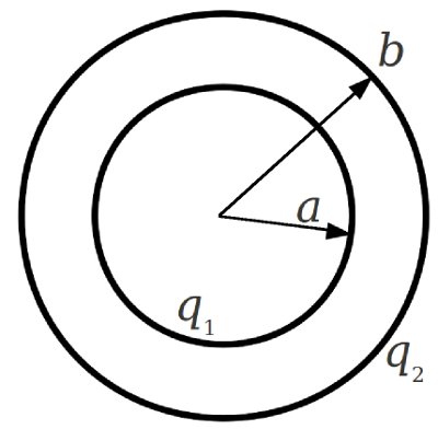 Две концентрические тонкостенные проводящие сферы с радиусами $a$ и $b$ заряжены зарядами