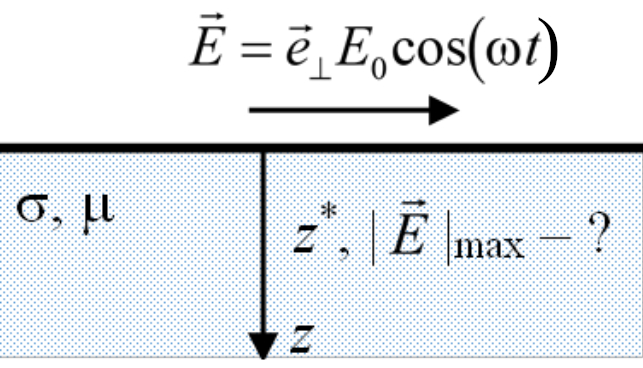 когда поле в верхнем полупространстве равно нулю, найти, на каком расстоянии $z^*$ от поверхности значение модуля электрического поля $E$ максимально и чему оно равно. |