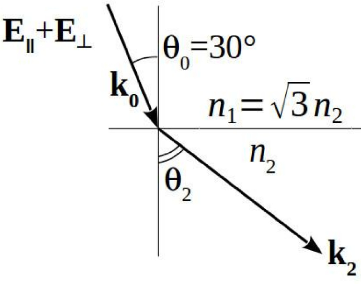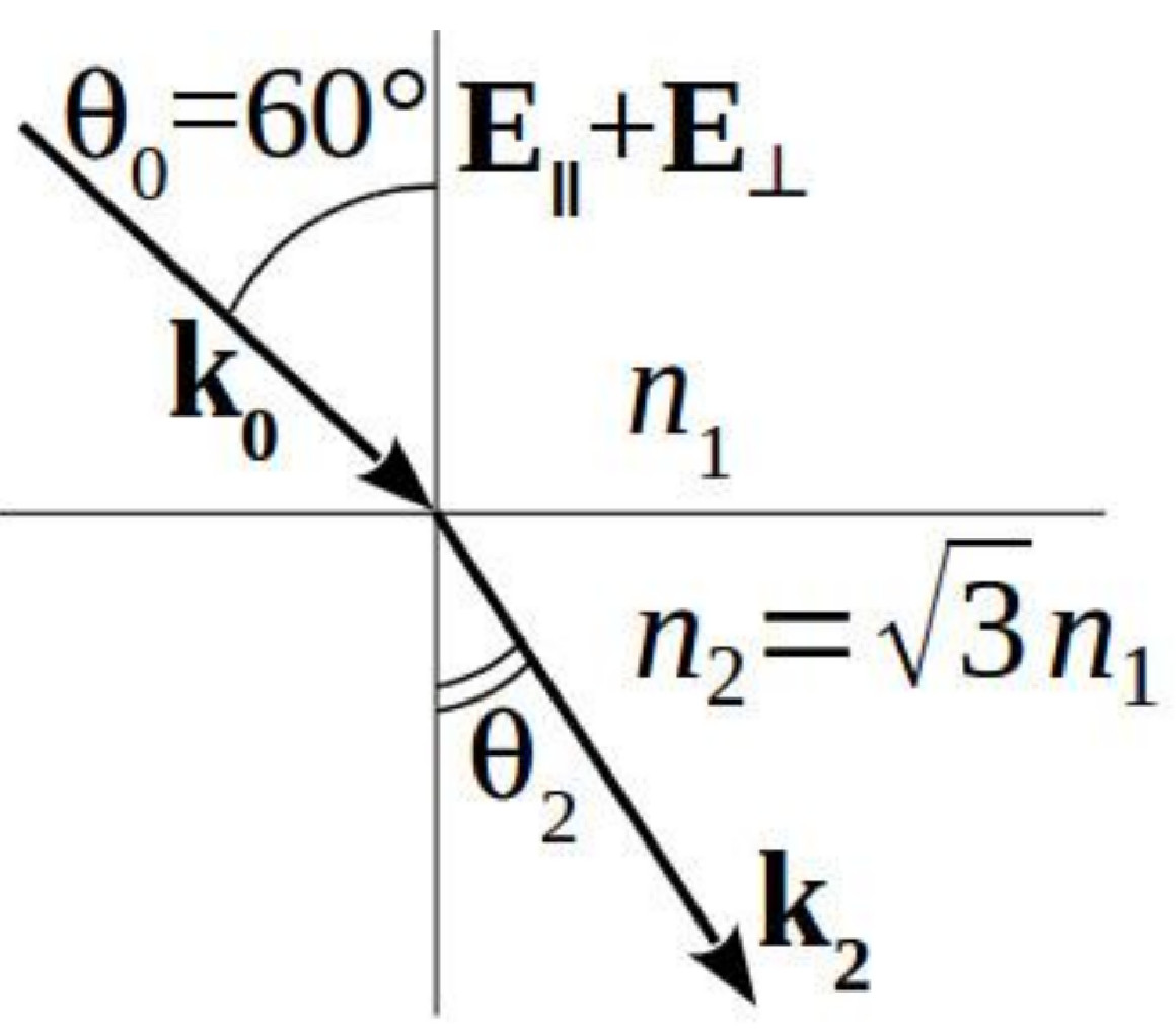 после отражения под углом $\theta_0 = 60^{\circ}$ от плоской границы среды с показателем преломления $n=\sqrt{3}$.
