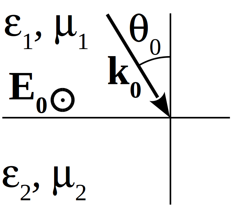 | TM-волна $\vec{E}_0=\vec{E}_{0m}\e^{i(\vec{k}\vec{r}-\omega t)}$