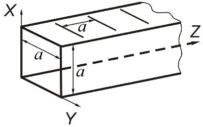 | В волноводе с металлическими стенками квадратного сечения $a\times a$