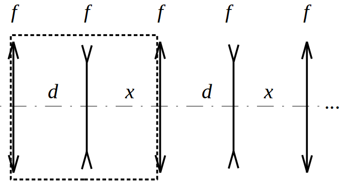 | Периодическая цепочка тонких аксиальных линз имеет следующий период: