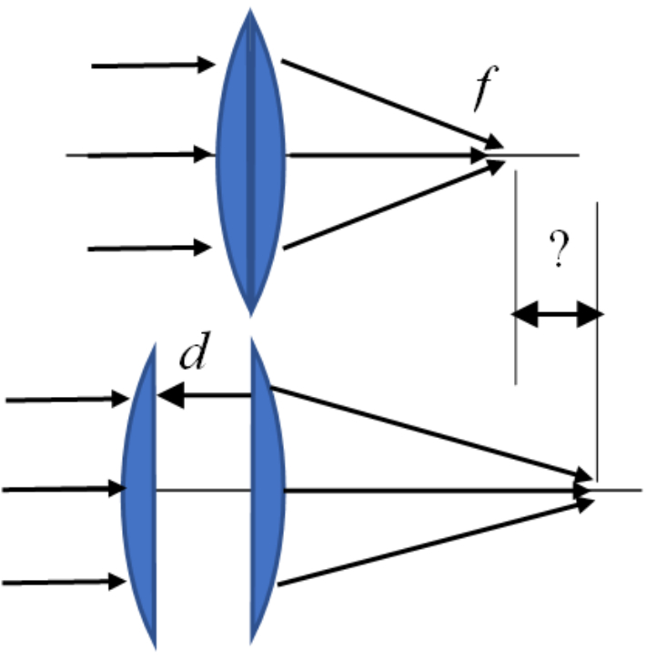 оптической оси. На какое расстояние $d$ правую половинку линзы следует