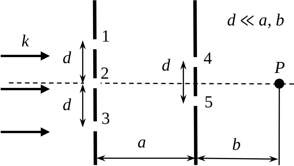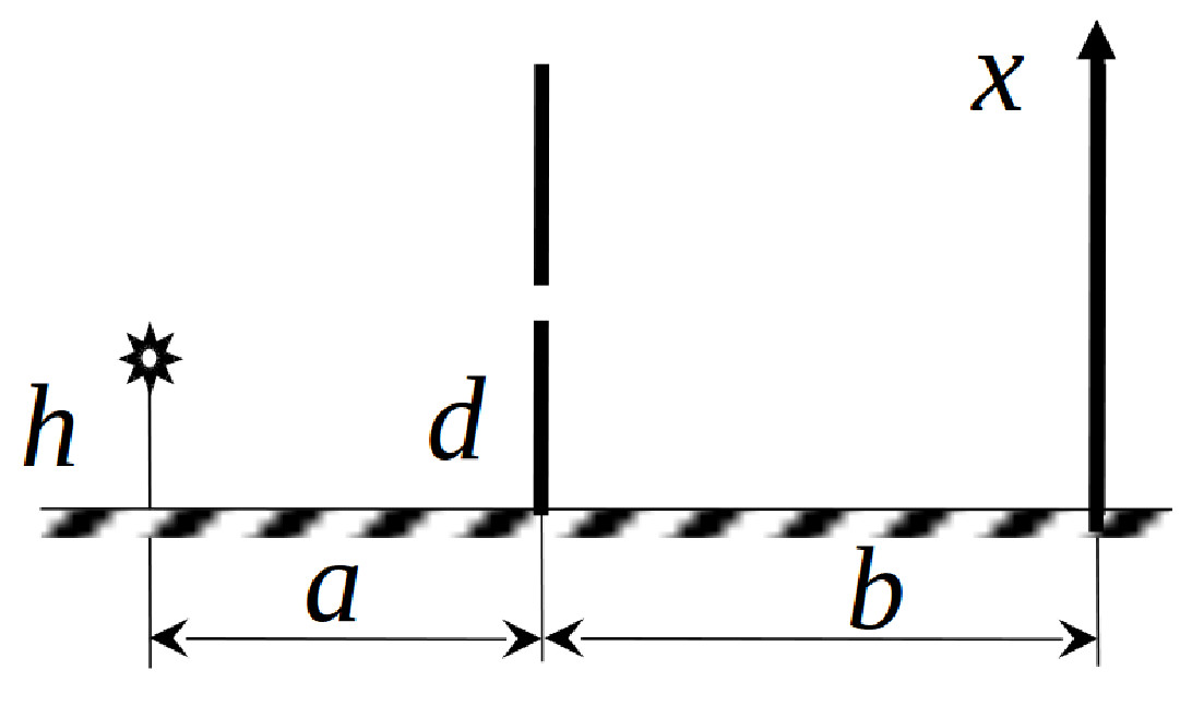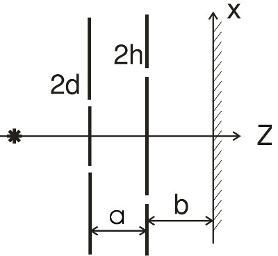 второго экрана до плоскости наблюдения – $b$, $2d$ и $2h\ll a$ и $b$. Найти, при