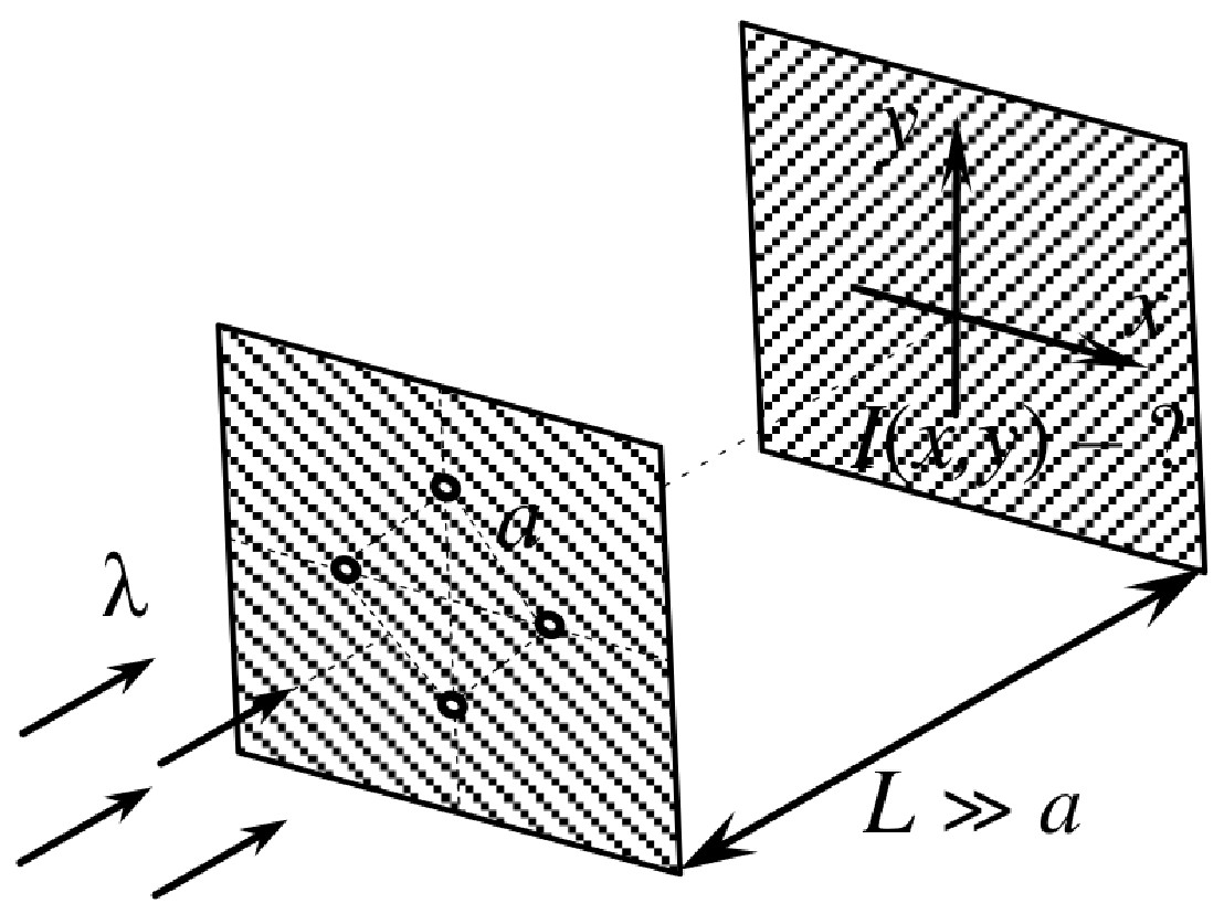 Найти распределение интенсивности $I(x,y)$ на проекционном экране,