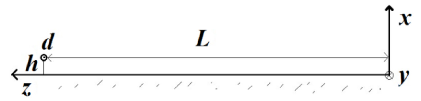 | Линейный диполь $\vec{d}=qa\cdot \cos(\omega t)\vec{e}_y$ находится на высоте $h$