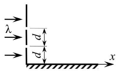 равно $d$, падает по нормали плоская волна длиной $\lambda$. Интерференционная