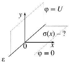 плотность свободного заряда $\sigma (x)\, (x > 0)$ в плоскости $y = 0$. |