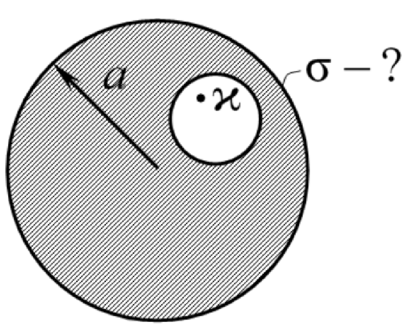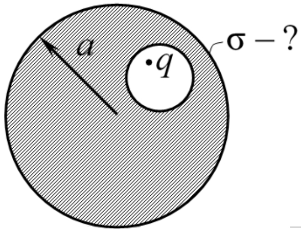 незаряженном проводящем шаре радиуса $a$. Найти плотность зарядов на внешней поверхности шара. |