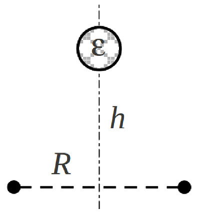 расстоянии $h$ от его центра расположен диэлектрический шарик радиуса $a$