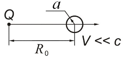 | Шарик радиуса $a$ с диэлектрической проницаемостью $\varepsilon$ движется по прямой в направлении от неподвижного